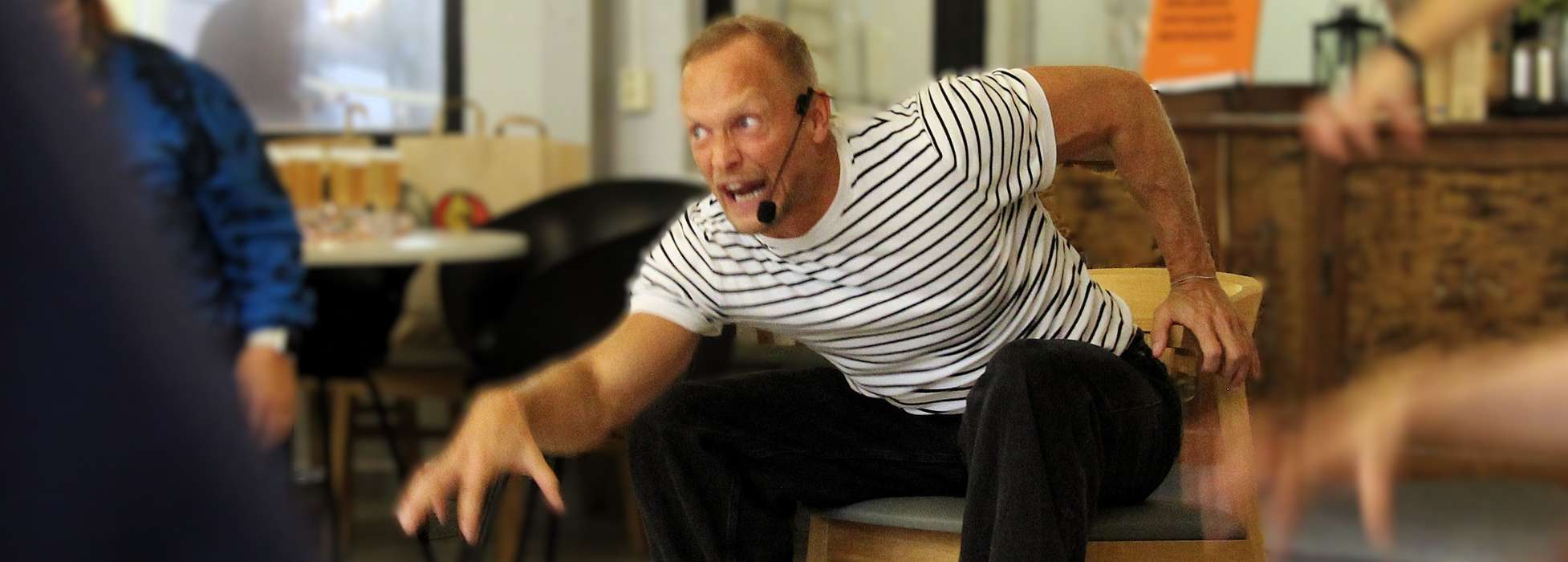 Lyckligtvis är danserna anpassade efter utövarna som både sittandes och ståendes utförde rörelserna till tonerna av bland annat Lill-Babs ”Tuff brud i lyxförpackning”. Det är högt i tak, mycket fnitter, goa skratt och kommentarer när de tar till sig av Tobias förklaringar. Det blir många grrr blandat med lite myspystrall under timmen när de mer eller mindre graciösa rörelserna övades in.