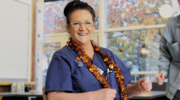 Urzula Krupa, undersköterska, gläds över att dans och musik åter tar plats på Varagården. Foto: Diana Larsson
