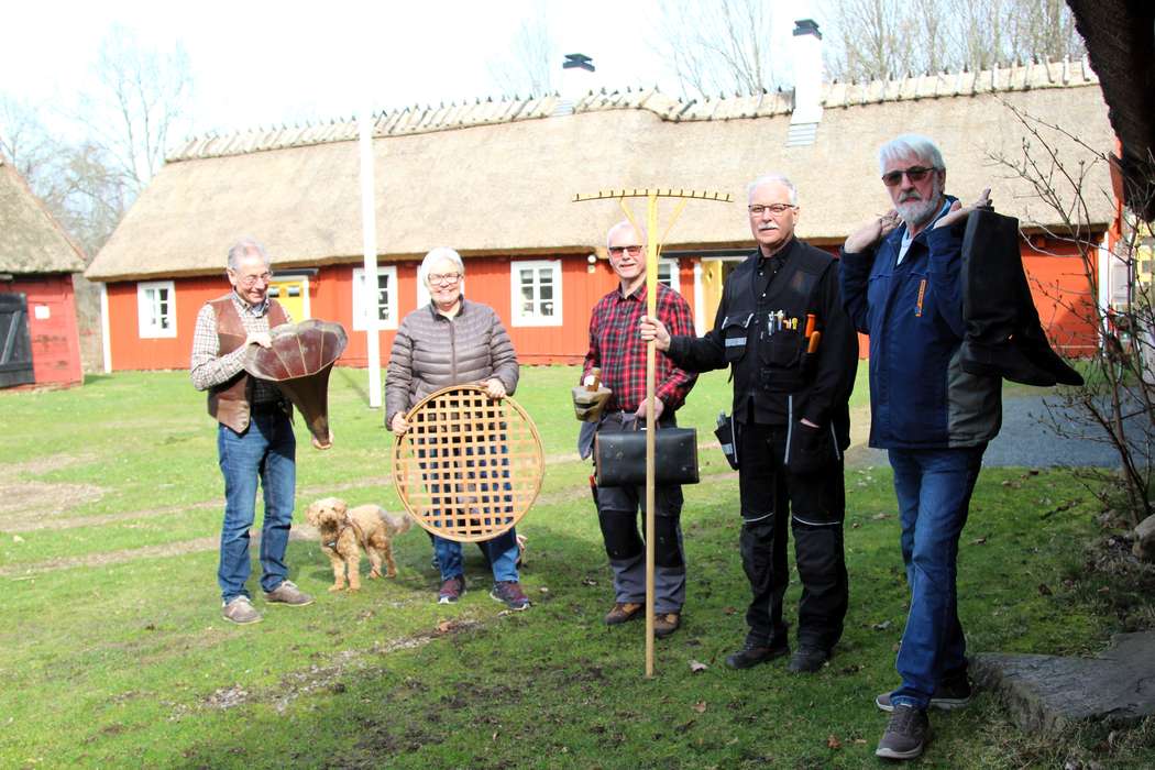 Hembygdsföreningens vision är att stärka hembygdsgården som mötesplats. Varje tisdags- och onsdagsförmiddag träffas medlemmarna för att umgås, arbeta och fika. Vid Söderåsen Nu:s besök sorteras föremål som sanerats hos Schröder i Tyringe och logen ska tömmas för att få fram trägolvet som är i stort behov av skurning. Jan Bengtsson kommer gående med ett gäng stövlar som ska in i skomakarhörnan och samtidigt förbereds fikan där de snart samlas för att prata om stort som smått.