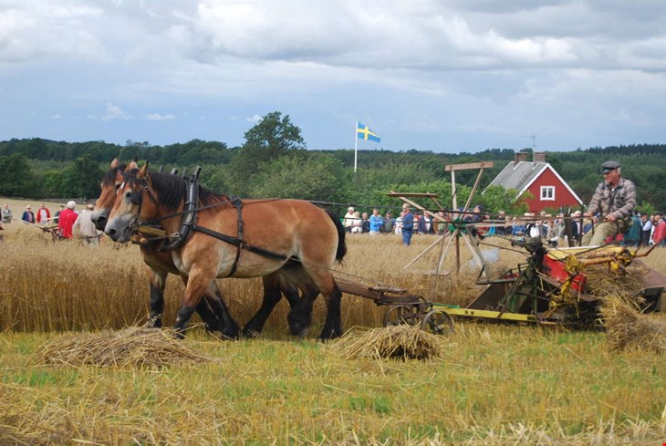 Innan traktorns ankomst var hästen den självklara dragaren. Idag lyser de med sin frånvaro på fälten, men på Åkesholm visas den gamla hantverkskonsten åter upp för allmän beskådan. Foto: Privat