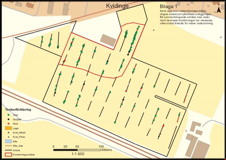 I redovisningen av den arkeologisk utredningen står: ”Det kvarstår antikvariska intressen inom den norra samt nordvästra delen av området. Sammantaget uppgår ytan till cirka 11 160 kvm. Om ytan ska exploateras föreslås den bli föremål för arkeologisk förundersökning för att fastställa fornlämningens karaktär, datering, utbredning och komplexitet samt klargöra bevarandegraden.”