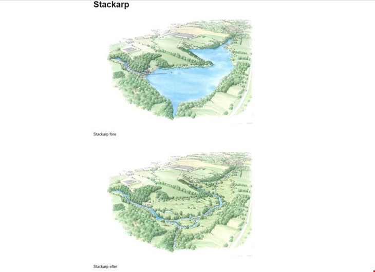 Rönne å-projektet omfattar tre kraftverk. Vid Stackarp kommer två stora dammar att återgå till att vara betesmark, vilket det var innan dammarna anlades. Bild: Klippans kommun/ Carina Lindkvist