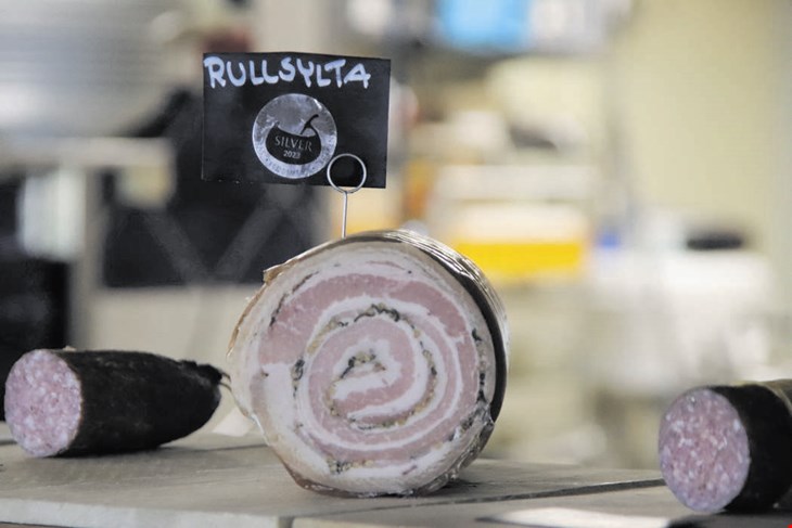– Bjärhus rullsylta har sedan tidigare prisats med SM-guld. Nu har vi mixtrat lite med receptet och kokat den i vaakumpåse. Pappa kokade den i gryta, men vi vill att den ska fungera att tillverka vettigt. Vi jobbar med små maskiner och handpåläggning, säger Max och Joel tillägger: