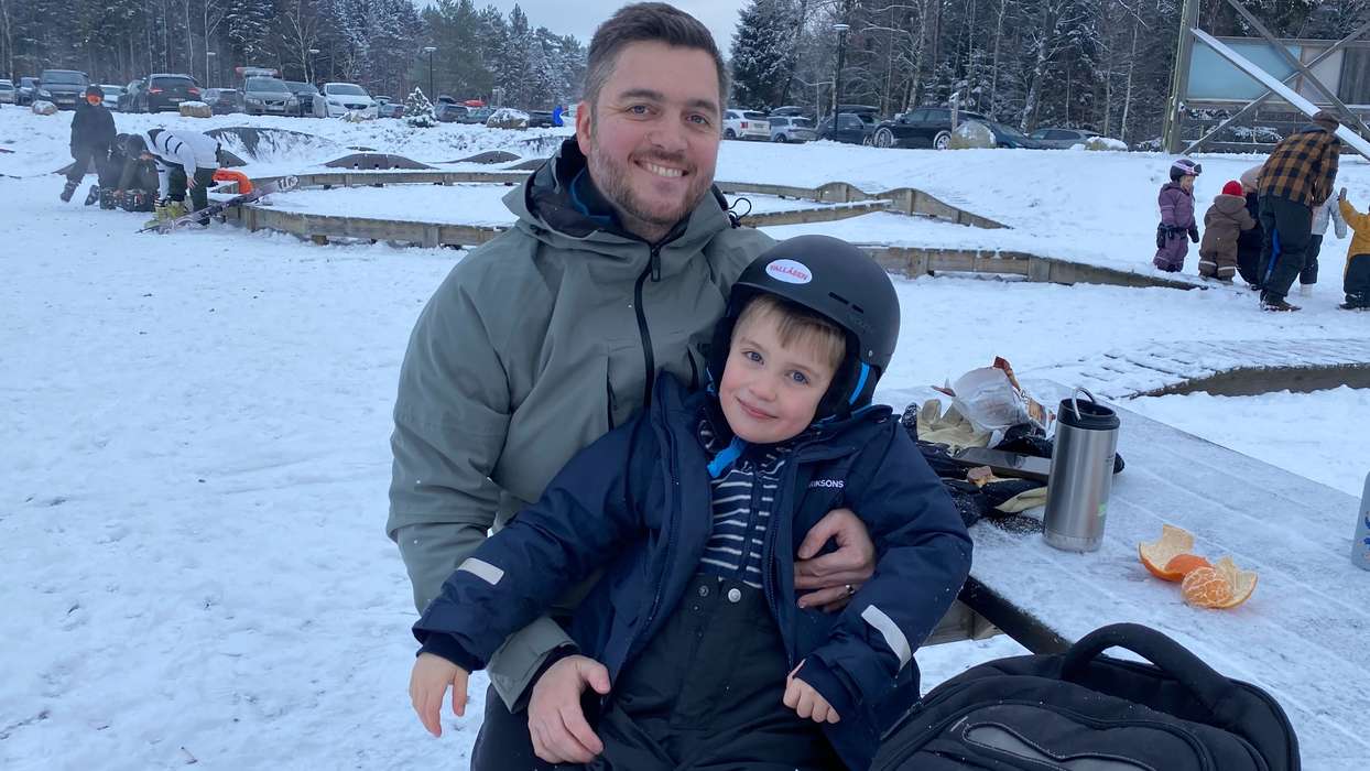 – Jag var ungefär så gammal som Frank när jag lärde mig att åka skidor och har sedan åkt både i fjällen och i Alperna. Frank har jullov så det var kul att vi kunde åka hit så att han fick prova på, säger Mikael Ryd.