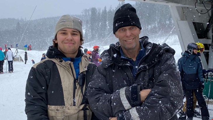 Två av premiäråkarna var Mikael och sonen Frank Ryd från Helsingborg. För Frank var det andra gången i livet på skidor.