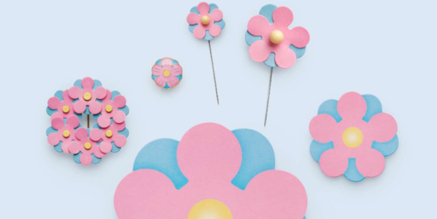 Årets majblomma går i rosa och ljusblå toner med en gul pistill. Designerduon Saga Laventzakis och Leia Sandell, 14 år, från Järfälla, har döpt blomman till "En gladare vardag".